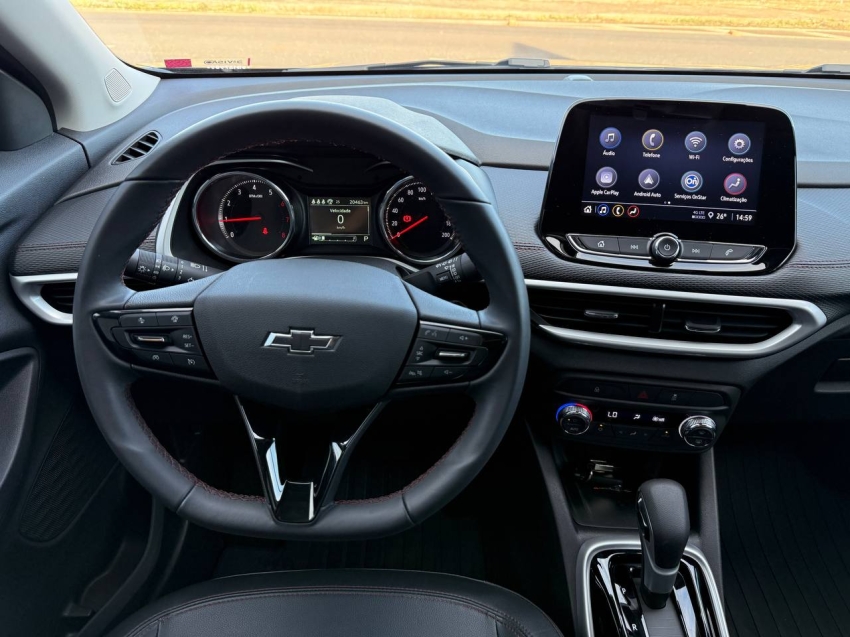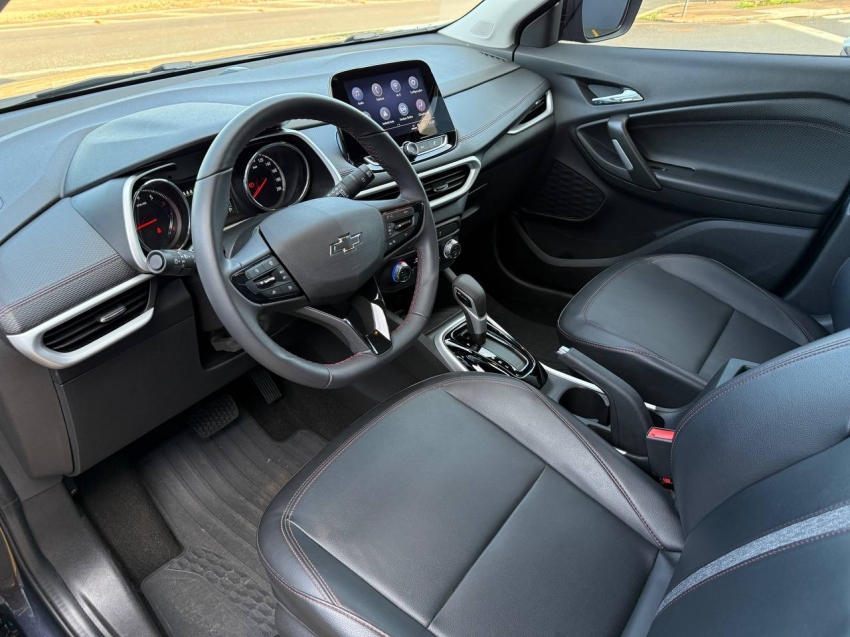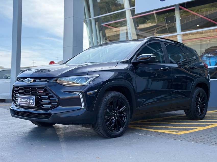 Chevrolet Tracker RS 2024/2025, versão esportiva com visual exclusivo, equipado com motor 1.2 Turbo flex e câmbio automático. SUV moderno, econômico e seguro, oferecendo excelente dirigibilidade, conforto e conectividade. Conta com seis airbags, controle de estabilidade, alerta de mudança de faixa, painel digital, central multimídia MyLink com Android Auto e Apple CarPlay, além de câmera de ré e sensores de estacionamento. Ideal para quem busca estilo esportivo aliado à tecnologia e confiabilidade.