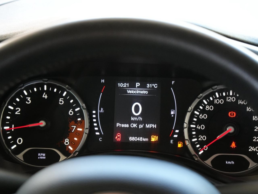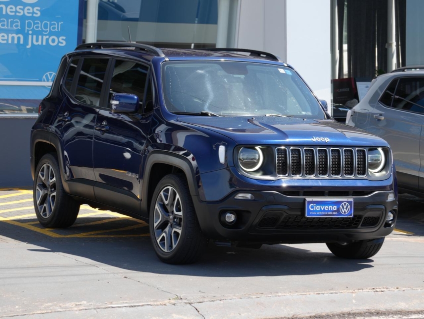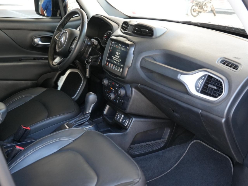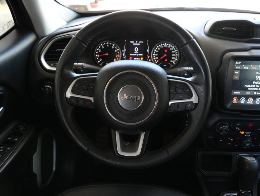 Jeep Renegade Longitude 1.8 Flex Automático 2020/2021 - versão Longitude com motor 1.8 flex, câmbio automático AT6, direção elétrica e pacote completo de conforto e segurança. Equipado com ar-condicionado digital, central multimídia com Android Auto e Apple CarPlay, controle de estabilidade, sensores de estacionamento e rodas de liga leve. Excelente opção de SUV compacto confortável e moderno.