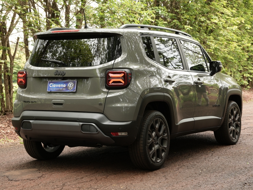 Jeep Renegade S 1.3 Turbo 4x4 Automático 2023 - versão completa com motor T270, tração integral, câmbio automático de 9 marchas, ideal para quem busca segurança, tecnologia e desempenho. Equipado com acabamento robusto, ótimo desempenho e ampla lista de itens de conforto e segurança. Carro pronto para todos os tipos de uso.