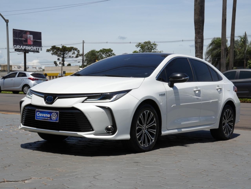 Toyota Corolla Altis Premium Hybrid 1.8 e-CVT 2022/2023 - versão híbrida topo de linha, com motorização 1.8 híbrida (elétrico + combustão) e câmbio automático e-CVT, garantindo economia, conforto e excelente desempenho no uso urbano e rodoviário.