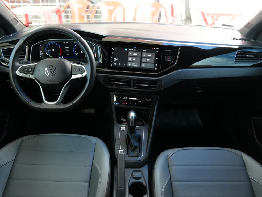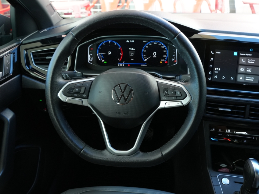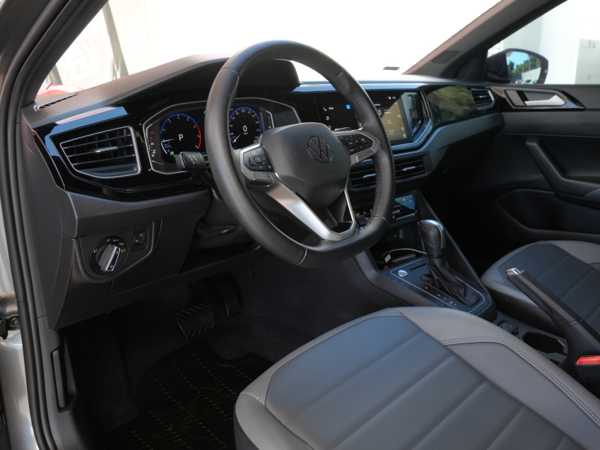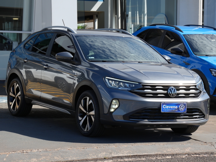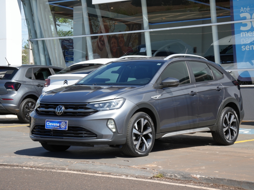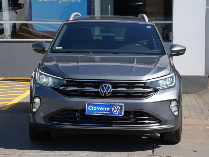 Volkswagen Nivus Highline 200 TSI AD 2022/2022 - versão topo de linha com motor 1.0 turbo, câmbio automático, direção elétrica e pacote completo de tecnologia e segurança. Equipado com painel digital, central multimídia VW Play com Android Auto e Apple CarPlay, câmera de ré, sensores de estacionamento, controles de estabilidade e tração, faróis em LED e rodas de liga leve. Um SUV cupê moderno, econômico e confortável.