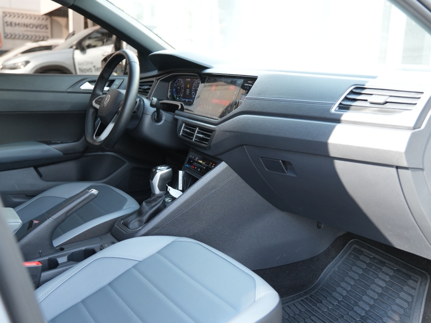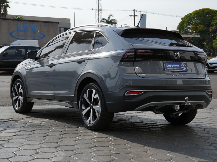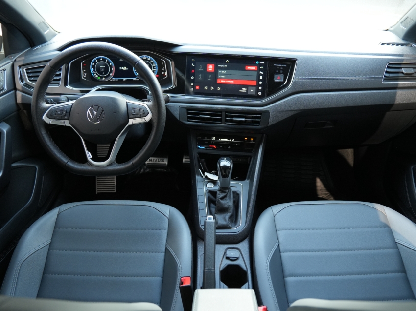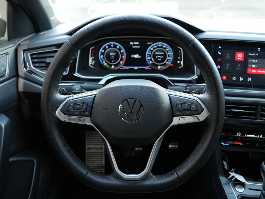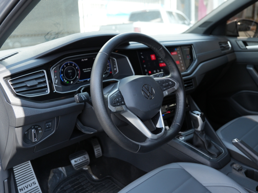 Volkswagen Nivus Highline 1.0 200 TSI Flex Automático 2023/2024, SUV cupê moderno, completo e conectado. Equipado com motor turbo, câmbio automático de 6 marchas, central multimídia VW Play com Android Auto e Apple CarPlay, ar-condicionado digital, painel 100% digital e diversos itens de segurança como ABS, controle de estabilidade, airbags frontais e laterais. Ideal para quem busca tecnologia, economia e design inovador.
