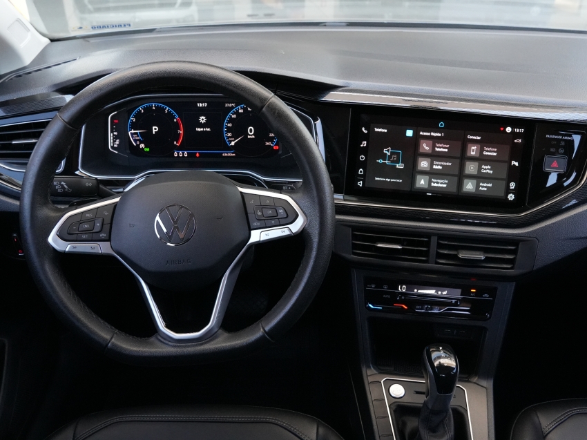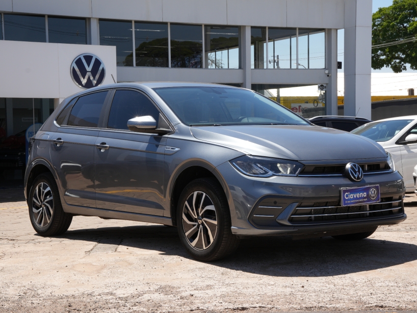 O Volkswagen Polo Highline 1.0 200 TSI Automático 2023/2023 combina desempenho, conforto e tecnologia em um hatch premium com excelente acabamento e baixo consumo. Equipado com o moderno motor 1.0 Turbo 200 TSI Flex e câmbio automático de 6 marchas, oferece dirigibilidade suave e eficiente. Conta com central multimídia VW Play, painel digital, conectividade total e uma ampla lista de itens de segurança e conveniência.