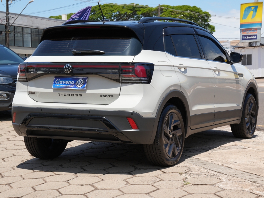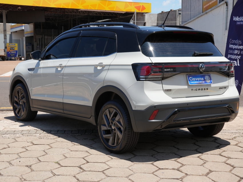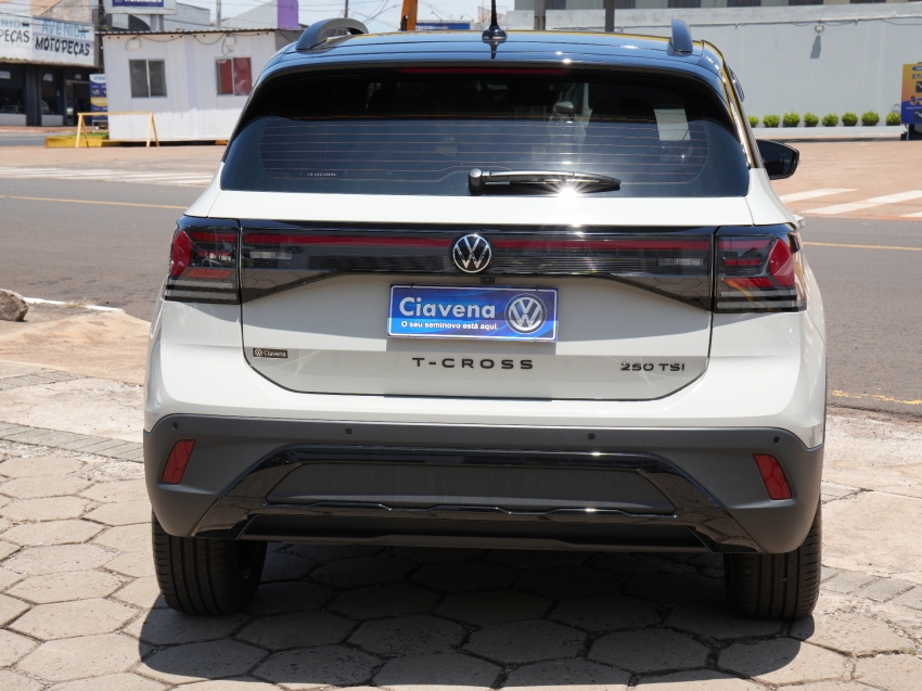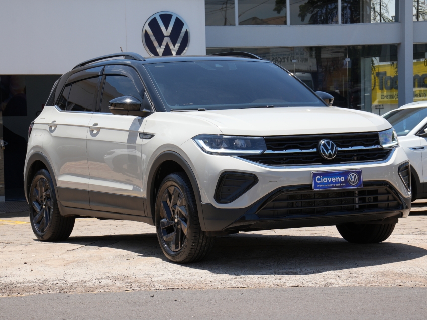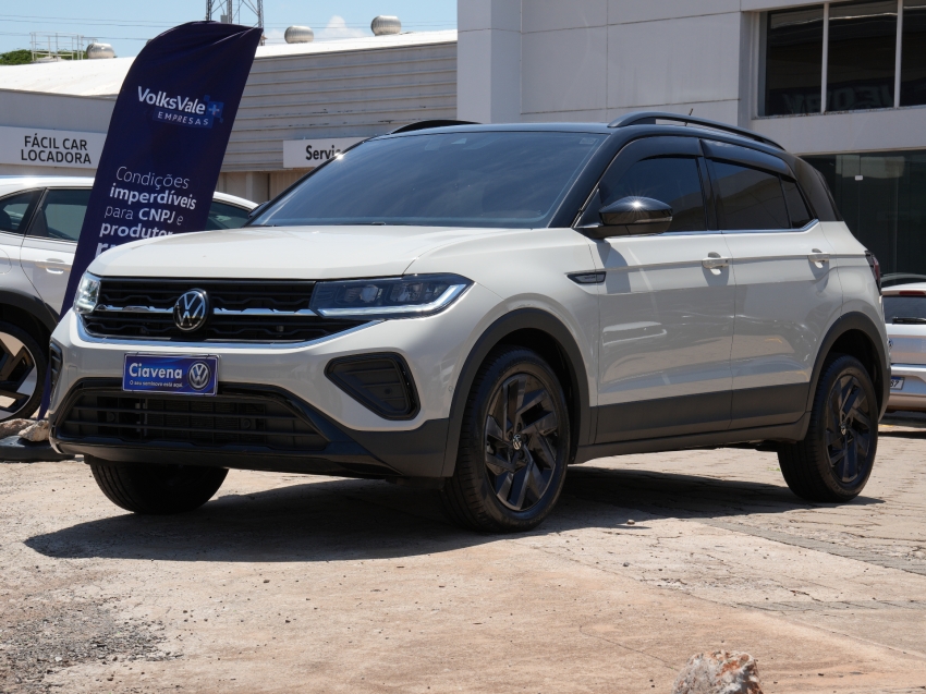 Volkswagen T-Cross Highline 1.4 TSI Automático 2024/2025, versão topo com motor 1.4 turbo, câmbio automático de 6 marchas, acabamento premium e tecnologia embarcada. Conta com central multimídia, câmera de ré, faróis LED e estabilidade para máxima segurança. Um SUV compacto sofisticado e potente.